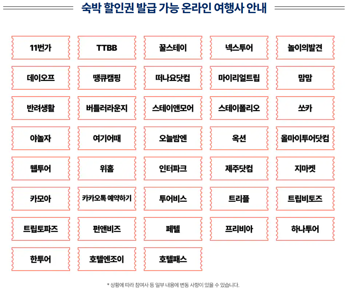 ◻ 숙박 할인권은 참여하는 온라인 여행사에서 발급받아 사용할 수 있습니다.