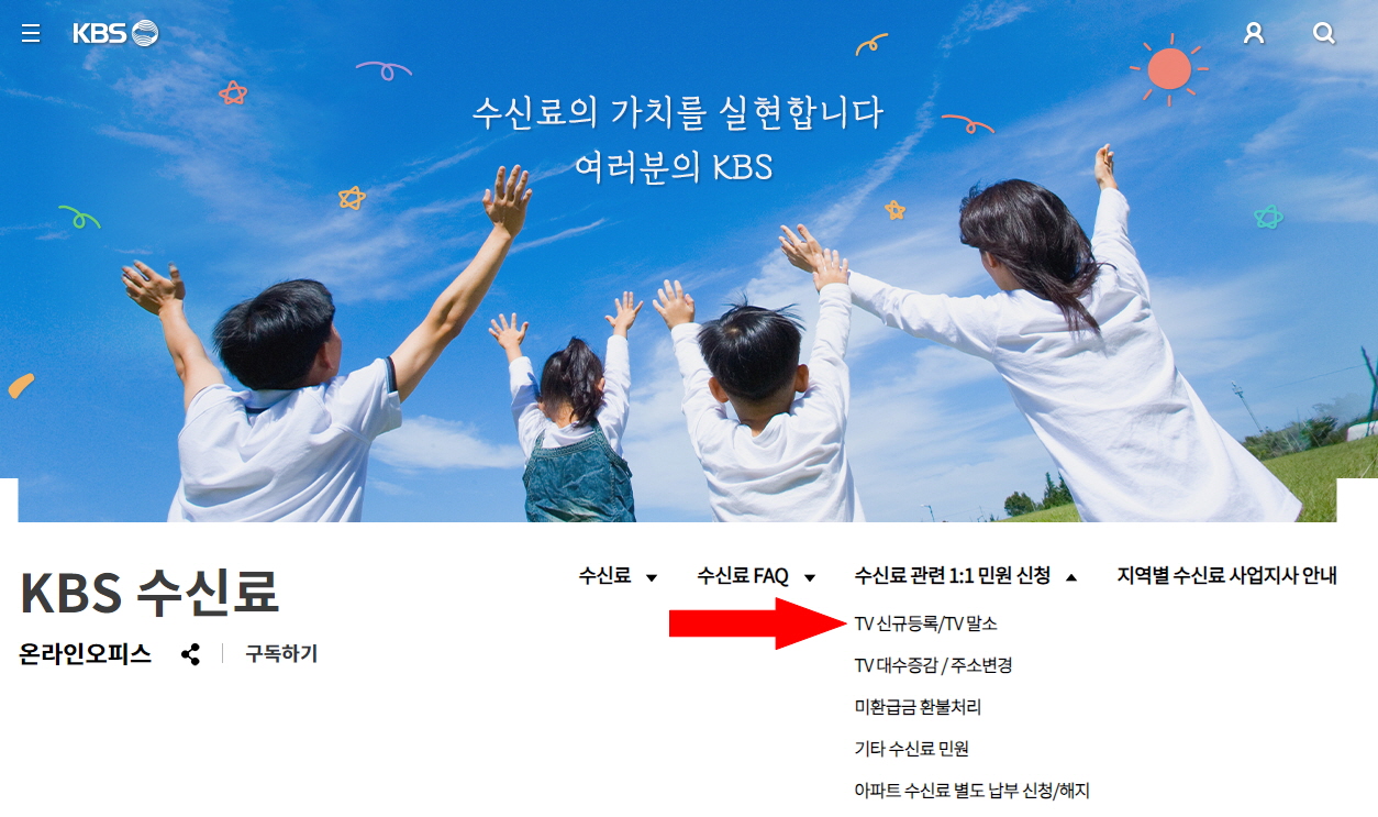 ▶KBS 홈페이지 접속 후 ➡ 수신료 관련 1:1 민원 신청 ➡ TV 신규 등록/TV 말소.